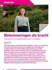 Stel je voor: je bent net begonnen met je eerste baan. Je zit in een vergadering met collega’s die al jaren meedraaien. De agenda wordt vlot afgewerkt, meningen vliegen over tafel, besluiten volgen elkaar snel op. Jij hebt gedachten, vragen, misschien zelfs een ander perspectief. Maar voordat je iets kunt zeggen, neemt je onzekerheid het over en val je stil. Tien minuten later is de vergadering voorbij en heb je niets ingebracht. In gesprekken met young professionals ziet Olivia Nolst Trenité, werkzaam als trainer bij trainingsinstituut de Baak, dit patroon regelmatig terugkeren. Samen met Olivia verkennen we hoe onzichtbare belemmeringen ontstaan, waarom ze juist in deze tijd zo sterk spelen, en hoe loopbaanprofessionals starters kunnen begeleiden bij het ombuigen van onzekerheid naar kracht.