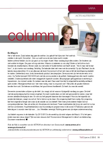 Jos bladert nog eens in de kalender. Op 23-12-2012 is de wereld op zijn eind volgens de Maya’s. Of is het geen einde maar een nieuw begin? Tijd voor een nieuwe start? Economie en Management in dienst van leiderschap. Duurzaam waarderend.