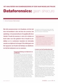 Met alle examenvormen is te frauderen, als het niet door de kandidaat is dan wel door de corrector, het opleidings- of exameninstituut of mogelijk zelfs door ‘derden’. Fraude bij examens is niet uit te sluiten en komt vaker voor dan gedacht. Hoe is fraude te ontdekken en te voorkomen teneinde de intrinsieke waarde van diploma’s te borgen? Dit artikel gaat over het opsporen van fraude met behulp van dataforensics bij het analyseren van mc-examens.
