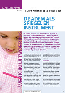 De adem is de drager van de levenskracht. Hij vormt de verbinding tussen lichaam en geest. De adem begeleidt ons het hele leven, we kunnen hem beschouwen als onze dichtstbijzijnde vriend. Een bewuste verbinding aangaan met dit ‘maatje’ brengt ons in contact met ons innerlijk, geeft ons waardevolle boodschappen, bevordert onze gezondheid en ons welbevinden. De adem kan veel betekenen binnen een coachingstraject. Daarin kan de adem een waardevolle spiegel zijn en een middel om veranderingsprocessen op een diep niveau te stimuleren.