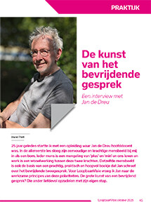 25 jaar geleden startte ik met een opleiding waar Jan de Dreu hoofddocent was. In de allereerste les sloeg zijn eenvoudige en krachtige mensbeeld bij mij in als een bom. Ieder mens is een mengeling van ‘plus’ en ‘min’ en ons leven en werk is een wisselwerking tussen deze twee krachten. Datzelfde mensbeeld is ook de basis van een prachtig, praktisch en hoopvol boekje dat Jan schreef over het bevrijdende tweegesprek. Voor LoopbaanVisie vroeg ik Jan naar de werkzame principes van deze polariteiten. De grote kunst van een bevrijdend gesprek? Die ander liefdevol opzadelen met zijn eigen stap.