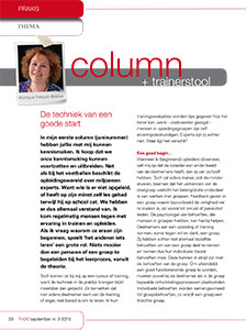 In mijn eerste column (juninummer) hebben jullie met mij kunnen kennismaken. Ik hoop dat we onze kennismaking kunnen voortzetten en uitbreiden. Net als bij het voetballen beschikt de opleidingswereld over miljoenen experts. Want wie is er niet opgeleid, of heeft op zijn minst zelf les gehad terwijl hij op school zat. We hebben er dus allemaal verstand van. Ik kom regelmatig mensen tegen met ervaring in trainen en opleiden. Als ik vraag waarom ze eraan zijn begonnen, speelt ‘het anderen iets leren’ een grote rol. Niets mooier dan een persoon of een groep te begeleiden bij het leerproces, vanuit de theorie.