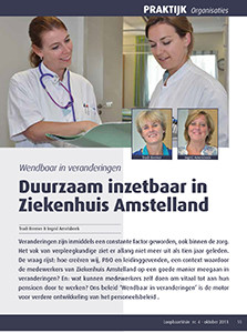 Veranderingen zijn inmiddels een constante factor geworden, ook binnen de zorg. Het vak van verpleegkundige ziet er allang niet meer uit als tien jaar geleden. De vraag rijst: hoe creëren wij, P&O en leidinggevenden, een context waardoor de medewerkers van Ziekenhuis Amstelland op een goede manier meegaan in veranderingen? En: wat kunnen medewerkers zelf doen om vitaal tot aan hun pensioen door te werken? Ons beleid ‘Wendbaar in veranderingen’ is de motor voor verdere ontwikkeling van het personeelsbeleid .