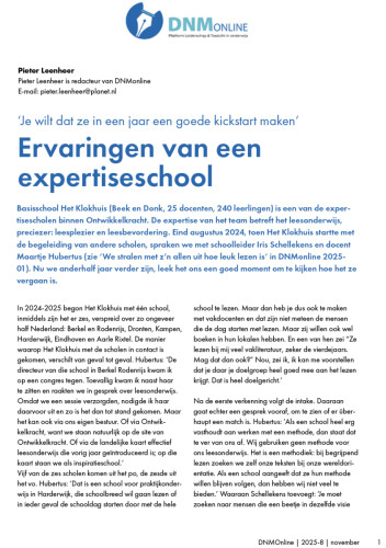 Basisschool Het Klokhuis (Beek en Donk, 25 docenten, 240 leerlingen) is een van de expertisescholen binnen Ontwikkelkracht. De expertise van het team betreft het leesonderwijs, preciezer: leesplezier en leesbevordering. Eind augustus 2024, toen Het Klokhuis startte met de begeleiding van andere scholen, spraken we met schoolleider Iris Schellekens en docent Maartje Hubertus (zie ‘We stralen met z’n allen uit hoe leuk lezen is’ in DNMonline 2025-01). Nu we anderhalf jaar verder zijn, leek het ons een goed moment om te kijken hoe het ze vergaan is.