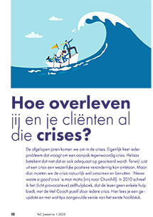 De afgelopen jaren komen we om in de crises. Eigenlijk heet ieder probleem dat vraagt om een aanpak tegenwoordig crisis. Helaas betekent dat niet dat er ook adequaat op geacteerd wordt. Terwijl juist uit een crisis een wezenlijke positieve verandering kan ontstaan. Maar dan moeten we de crisis natuurlijk wel omarmen en benutten. ‘Never waste a good crisis’ is mijn motto [vrij naar Churchill]. In 2010 schreef ik het (licht provocatieve) zelfhulpboek, dat de lezer geen enkele hulp biedt, met de titel Coach jezelf door iedere crisis. Hier lees je een geupdate en met wat tips aangevulde versie van het eerste hoofdstuk.