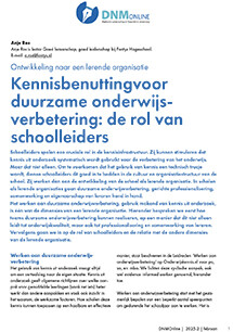 Schoolleiders spelen een cruciale rol in de kennisinfrastructuur. Zij kunnen stimuleren dat kennis uit onderzoek systematisch wordt gebruikt voor de verbetering van het onderwijs. Maar dat niet alleen. Om te voorkomen dat het gebruik van kennis een technisch trucje wordt, dienen schoolleiders dit goed in te bedden in de cultuur en organisatiestructuur van de school. Zij werken dan aan de ontwikkeling van de school als lerende organisatie. In scholen als lerende organisaties gaan duurzame onderwijsverbetering, gerichte professionalisering, samenwerking en eigenaarschap van leraren hand in hand. Het werken aan duurzame onderwijsverbetering, gebruik makend van kennis uit onderzoek, is één van de dimensies van een lerende organisatie. Hieronder bespreken we eerst hoe teams duurzame onderwijsverbetering kunnen realiseren, op een manier dat dit niet alleen leidt tot onderwijskwaliteit, maar ook tot professionalisering en samenwerking van leraren. Vervolgens gaan we in op de rol van schoolleiders en de relatie met de andere dimensies van de lerende organisatie.