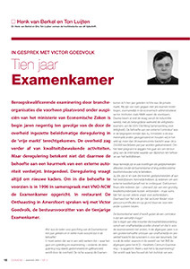 Beroepskwalificerende examinering door brancheorganisaties die voorheen plaatsvond onder auspiciën van het ministerie van Economische Zaken is begin jaren negentig ten gevolge van de door de overheid ingezette beleidsmatige deregulering in de ‘vrije markt’ terechtgekomen. De overheid zag verder af van kwaliteitsbewakende activiteiten. Maar deregulering betekent niet dat daarmee de behoefte aan een keurmerk van een externe autoriteit verdwijnt. Integendeel. Deregulering vraagt altijd om nieuwe kaders. Om in die behoefte te voorzien is in 1996 in samenspraak met VNO-NCW de Examenkamer opgericht. In restaurant De Onthaasting in Amersfoort spraken wij met Victor Goedvolk, de bestuursvoorzitter van de tienjarige Examenkamer.