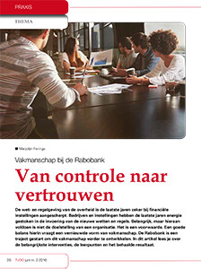 De wet- en regelgeving van de overheid is de laatste jaren zeker bij financiële instellingen aangescherpt. Bedrijven en instellingen hebben de laatste jaren energie gestoken in de invoering van de nieuwe wetten en regels. Belangrijk, maar hieraan voldoen is niet de doelstelling van een organisatie. Het is een voorwaarde. Een goede balans hierin vraagt een vernieuwde vorm van vakmanschap. De Rabobank is een traject gestart om dit vakmanschap verder te ontwikkelen. In dit artikel lees je over de belangrijkste interventies, de leerpunten en het behaalde resultaat.