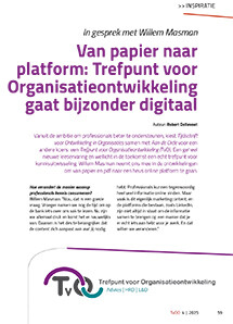 Vanuit de ambitie om professionals beter te ondersteunen, kiest Tijdschrift voor Ontwikkeling in Organisaties samen met Aan de Orde voor een andere koers: een Trefpunt voor Organisatieontwikkeling (TvO). Een geheel nieuwe leeservaring en wellicht in de toekomst een echt trefpunt voor kennisuitwisseling. Willem Masman neemt ons mee in de ontwikkelingen om van papier en pdf naar een heus online platform te gaan.