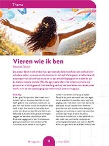 De auteur deelt in dit artikel haar persoonlijke levensverhaal, een verhaal over schaduw, vallen, opstaan en thuiskomen in zichzelf. Ze koppelt, al reflecterend, ervaringen van zichzelf van toen en nu aan enkele begrippen en modellen uit de transactionele analyse (TA). De egotoestanden, het script en physis zijn passend en inzicht gevend. Een krachtig verhaal van overleven naar leven, over veerkracht en een uitnodiging tot vieren wie je bent en mag zijn.