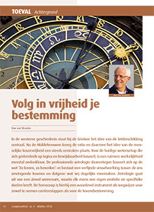 In de westerse geschiedenis staat bij de Grieken het idee van de lotsbeschikking centraal. Na de Middeleeuwen kreeg de ratio en daarmee het idee van de menselijke keuzevrijheid een steeds centralere plaats. Voor de huidige wetenschap die zich grotendeels op logica en bewijsbaarheid baseert, is een ruimere werkelijkheid meestal ondenkbaar. De professionele astrologie daarentegen baseert zich op de wet ‘Zo boven, zo beneden’: er bestaat een verfijnde wisselwerking tussen de ons omringende kosmos en datgene wat wij dagelijks meemaken. Astrologie gaat uit van een zinvol universum, waarin elk mens een eigen evolutie en specifieke doelen heeft. De horoscoop is hierbij een waardevol instrument als wegwijzer voor zowel te nemen carrièrestappen als voor de levensbestemming.