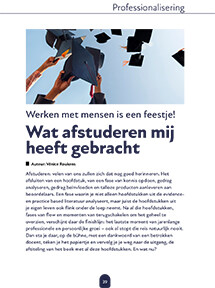 Afstuderen: velen van ons zullen zich dat nog goed herinneren. Het afsluiten van een hoofdstuk, van een fase van kennis opdoen, gedrag analyseren, gedrag beïnvloeden en talloze producten aanleveren aan beoordelaars. Een fase waarin je niet alleen hoofdstukken uit de evidenceen practice based literatuur analyseert, maar juist de hoofdstukken uit je eigen leven ook flink onder de loep neemt. Na al die hoofdstukken, fases van flow en momenten van terugschakelen om het geheel te overzien, verschijnt daar de finishlijn: het laatste moment van jarenlange professionele en persoonlijke groei – ook al stopt die reis natuurlijk nooit. Dan sta je daar, op de bühne, met een dankwoord van een betrokken docent, teken je het papiertje en vervolg je je weg naar de uitgang, de aftiteling van het boek met al deze hoofdstukken. En wat nu?